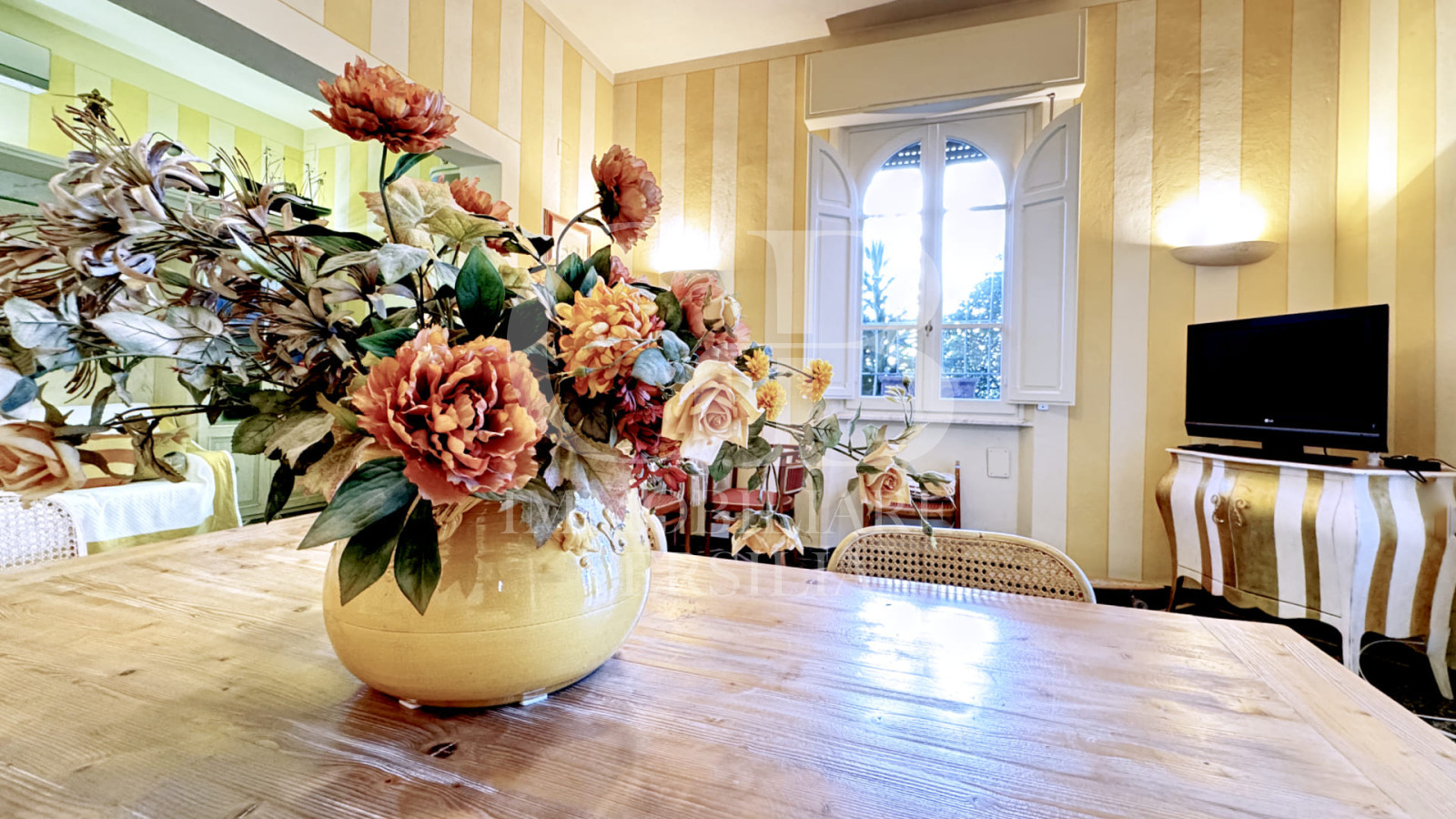 A soli 150 metri dalla spiaggia di Lido di Camaiore, presentiamo in vendita un appartamento al piano terra rialzato di una sontuosa casa Liberty, con giardino privato e posti auto dedicati.