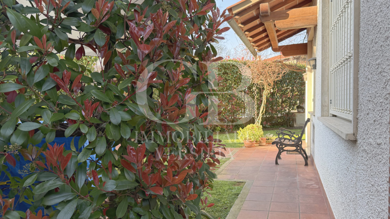Il giardino, curato e attrezzato con una pratica cucina esterna, rappresenta lo spazio perfetto per pranzi e cene all’aperto, garantendo privacy e tranquillità.
